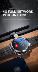 Reloj inteligente 4G LTE 2024 con sistema operativo Android, GPS, video, voz, llamadas, Wi-Fi, mensajería, cámaras duales HD, tarjeta SIM 4G, llamadas, Wi-Fi, reloj inteligente para hombres.