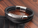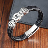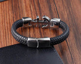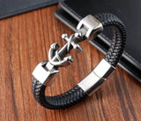 Pulsera de cuero con ancla de acero inoxidable y cruz, elegante y gruesa, accesorios de joyería para hombre.