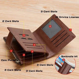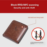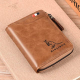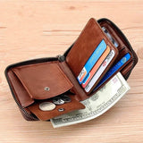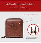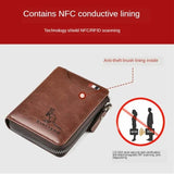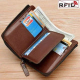 Cartera de cuero genuino para hombre, tarjetero RFID corto de lujo, monedero con cremallera, billetera portátil