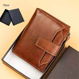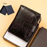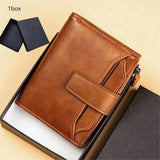 Cartera de hombre nueva de cuero corta vintage multitarjeta de cuero PU con caja de regalo pop