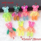 10 piezas de 45 x 28 mm, dijes de oso violento, cabujones de resina con parte trasera plana, brillantes, dulces, collares, llaveros, colgantes, accesorios para hacer bricolaje.