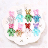 20 piezas de dijes de oso violento de 28 x 45 mm con purpurina y parte trasera plana de resina, accesorios para joyería, collares, colgantes y llaveros.