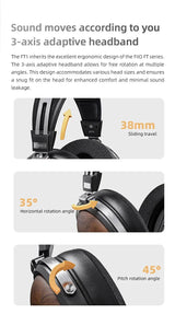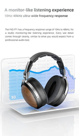 Auriculares supraaurales cerrados FiiO FT1 con controlador dinámico de 60 mm, audio de alta resolución, con cable, copas de madera negra americana para estudio.