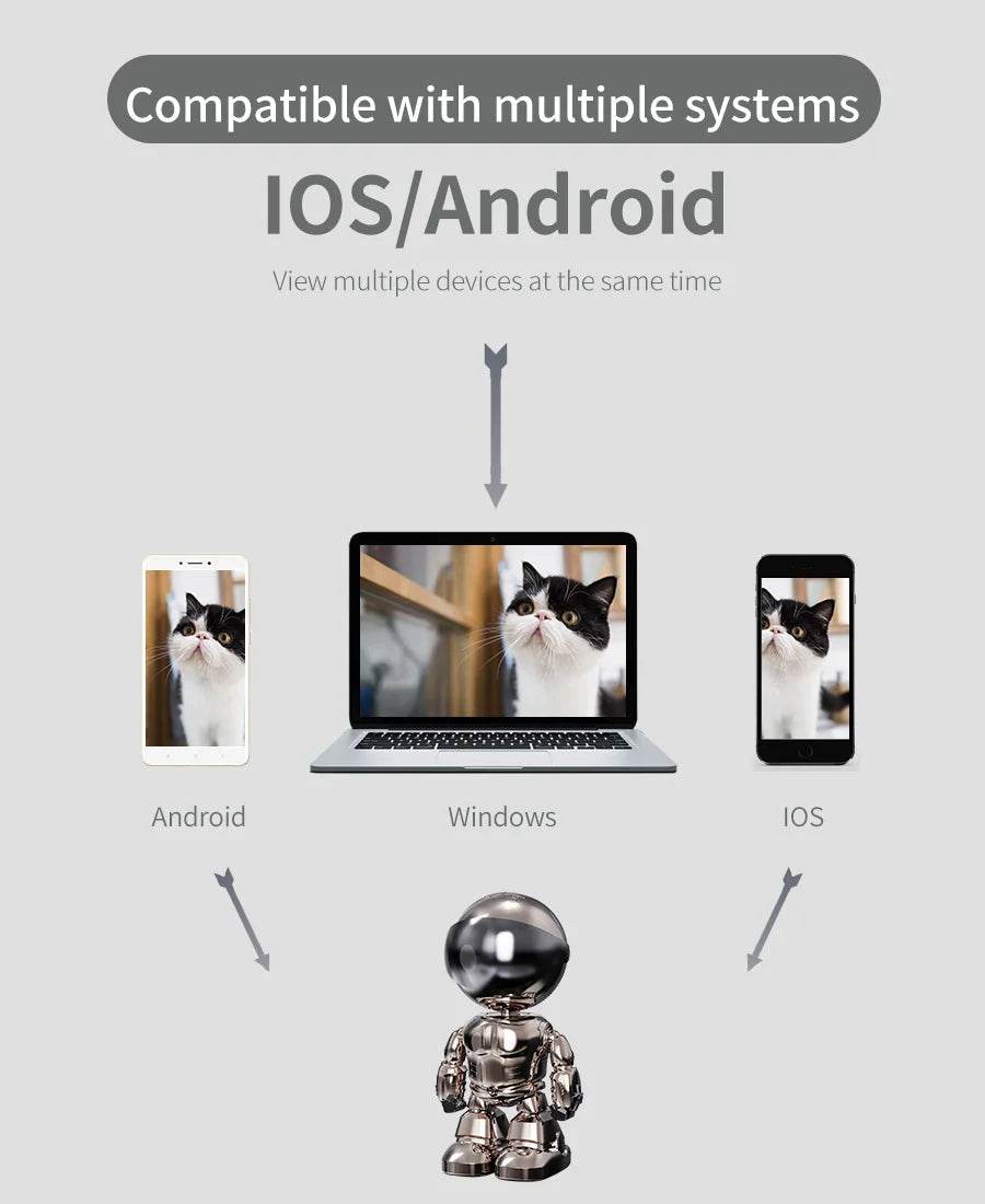 Cámara IP de 5 MP, cámara robótica inalámbrica de seguridad para el hogar, vigilancia con audio bidireccional, lente invisible, wifi, visión nocturna, robot para mascotas.